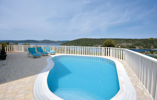 Auf der Insel Drvenik Veli befindet sich dieses moderne Ferienhaus mit Pool. Schön eingerichtet, verfügt es über vier Schlafzimmer, drei Badezimmer, Wohnzimmer mit Küche und Essbereich. Im Haus gibt es ebenfalls einen Fitnessraum. Auf der Poolterrasse können Sie den herrlichen Meerblick genießen und die Kinder mit Schaukel und Rutsche spielen. Am Grill bereiten Sie Ihre Gerichte zu. Drvenik ist ein kleines Fischerdorf mit kristallklarem Meer. Im Ort gibt es ein paar Restaurants und kleine Geschäfte. Die wenig bewohnte Insel garantiert Erholung und viel Badespaß im sauberen Meerwasser. Trogir erreichen Sie mit der Fähre, ein schönes Ausflugsziel.