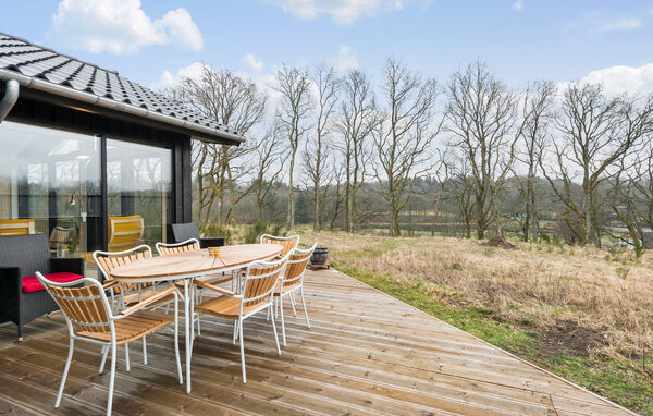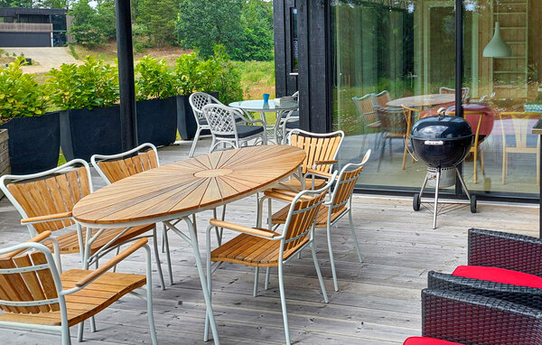 In diesem wunderschönen Ferienhaus erwartet Sie ein erholsamer Urlaub mitten in der Natur. Innen bietet der geräumige Wohn- und Essbereich mit hoher Decke und großen Fenstern viel Licht und eine herrliche Aussicht, ideal für Familienmahlzeiten und gemütliche Stunden. Die hellen Farben und die moderne Einrichtung schaffen eine angenehme Atmosphäre, in der Sie sich zurückziehen und die Ferien in völliger Ruhe genießen können.