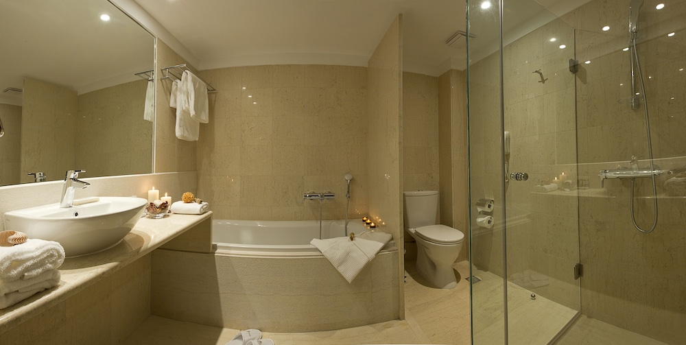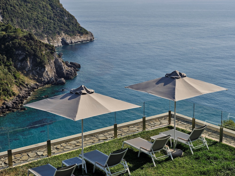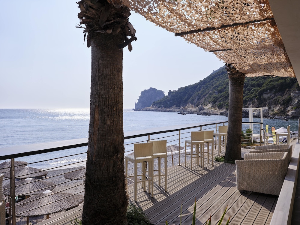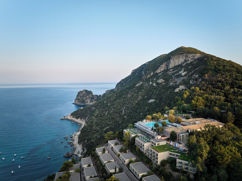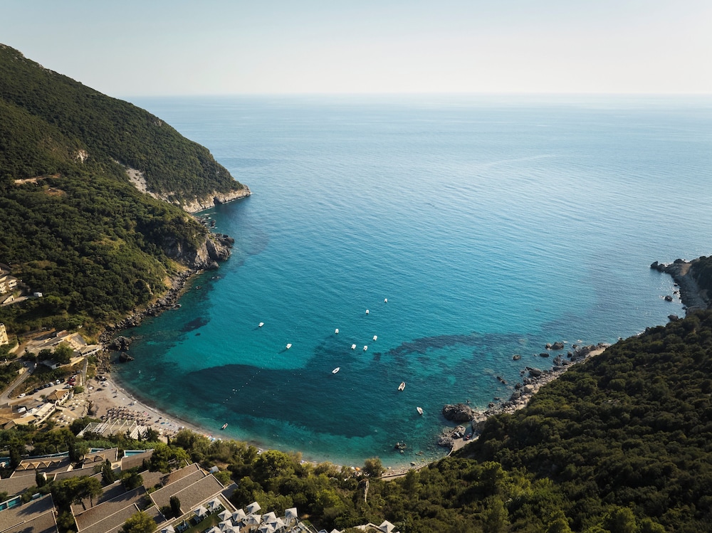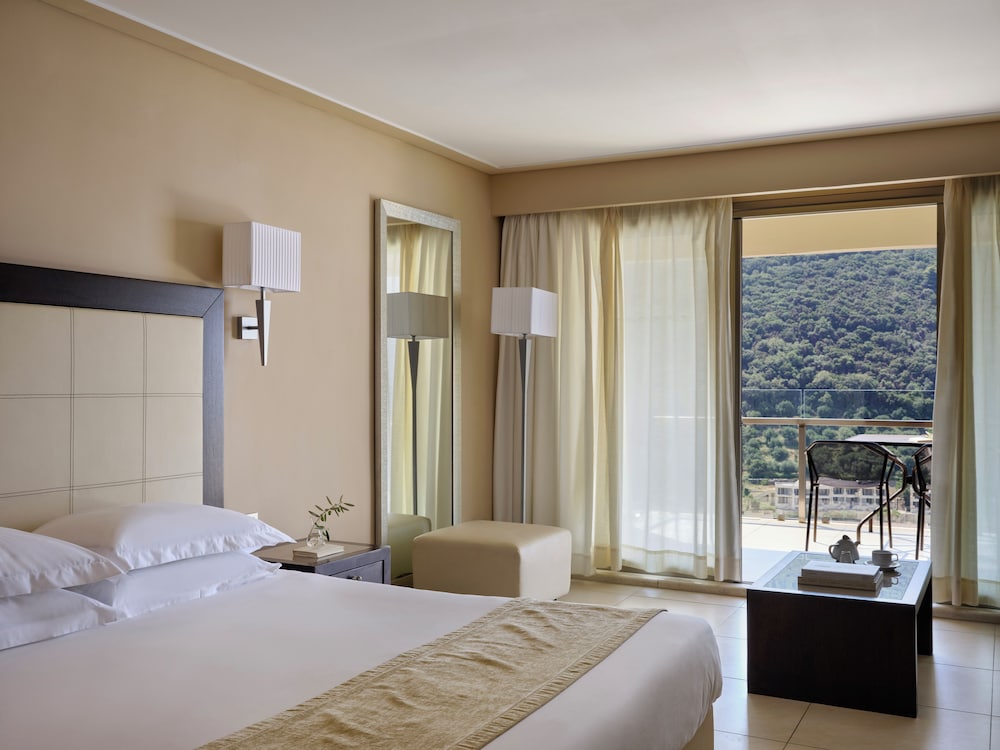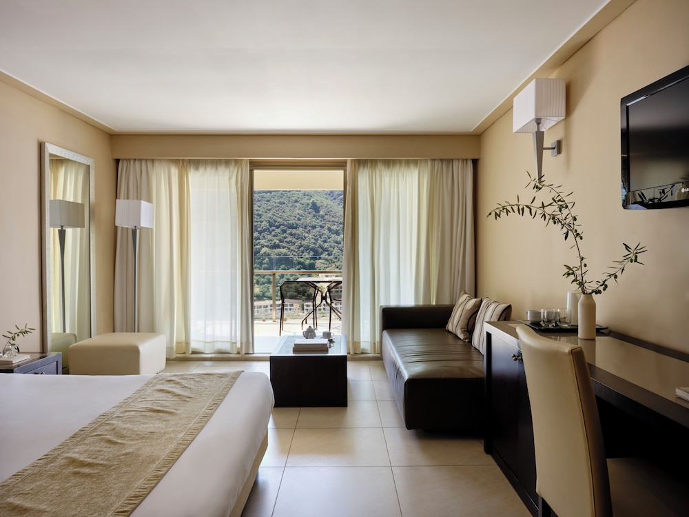 Atlantica Grand Mediterraneo Resort - Adults Only in Korfu liegt am Meer, eine 10-minütige Fahrt von Ermones-Strand und Kaisers Thron entfernt. Dieses Hotel in Strandnähe ist 15,4 km von Hafen von Korfu und 17,2 km von Strand von Paleokastritsa entfernt. Fühl dich in einem der 270 klimatisierten Zimmer mit LCD-Fernseher wie zu Hause. Ein WLAN-Internetzugang (kostenlos) ist ebenso verfügbar wie Satellitenempfang. Es sind eigene Badezimmer mit Badewannen und Duschen (separat) vorhanden, die über kostenlose Toilettenartikel und Haartrockner verfügen. Zur Austattung gehören Safes und Schreibtische; die Zimmer werden täglich sauber gemacht. Entfernungen werden bis auf 0,1 Kilometer gerundet.