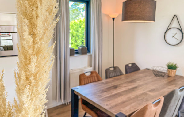 Dieses gemütliche Ferienhaus erstreckt sich über 2 Etagen und ist mit seiner modernen Einrichtung und hellen Zimmern sehr einladend. Das Herz des Hauses ist der Wohnbereich mit großen Fenstern und Essbereich, der mit der Küche verbunden ist. Verbringen Sie hier gesellige Abende mit der Familie und Freunden und genießen Sie vom Sofa den Ausblick in den Garten. Von hier gelangen Sie auch auf die offene Terrasse, auf der Sie den Tag mit einem leckeren Frühstück starten und die Aussicht auf die Landschaft und den Badesee genießen können.