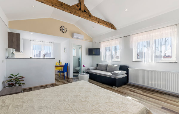 Vom Strand sind Sie nur knappe 800 m entfernt. Hier können Sie wunderbare Urlaubstage mit Schwimmen, Erholung, Wassersport und Spaziergängen verbringen. Erkunden Sie die wundervolle Peninsula Istrien. Die ist ein idealer Ausgangspunkt für viele interessanten Orte, von den malerischen istrischen Städten Svetvincenat, Zminj, Motovun bis hin zu echten touristischen Juwelen wie Rovinj und Porec. Die historische Stadt Pula ist eine Viertelstunde entfernt. Hier können Sie Sehenswürdigkeiten von der Antike bis in die Moderne besichtigen. Verpassen Sie nicht das Amphitheater Pula, das unter Kaiser Augustus erbaut wurde und gleichzeitig das Wahrzeichen der Stadt ist. Auch der Nationalpark Brijun ist einen Besuch wert.