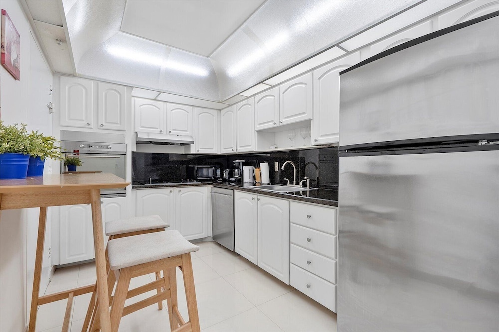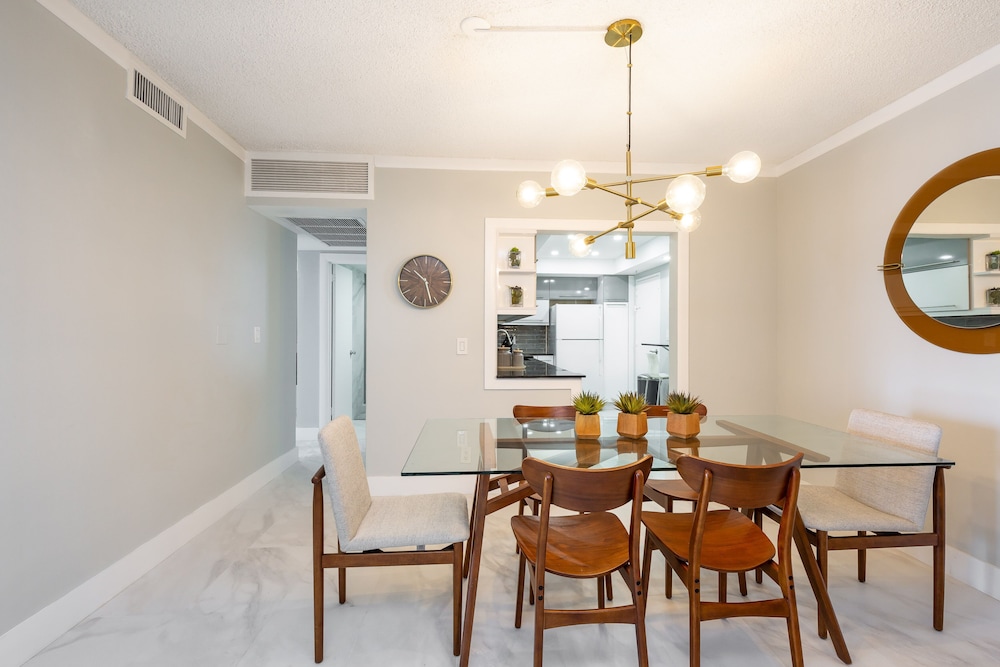 Diese Wohnung liegt im Herzen von Hollywood, nur einen 4-minütigen Fußmarsch von Hollywood Beach und eine 5-minütige Fahrt von Gulfstream Park Racing and Casino entfernt. Diese Ferienwohnung in Strandnähe ist 6,3 km von Aventura Mall und 15,2 km von Hard Rock Stadium entfernt. Mach es dir in dieser Ferienwohnung mit individueller Ausstattung gemütlich. In der Küche, die über einen großen Kühlschrank mit Gefrierfach und einen Ofen verfügt, wirst du dich wie zu Hause fühlen. Freu dich in deinem Privatbereich auf einen möblierten Balkon oder Patio. Um in Verbindung mit den Daheimgebliebenen zu bleiben, steht dir ein WLAN-Internetzugang (kostenlos) zur Verfügung, während für deine Unterhaltung dank der breiten Auswahl an Kanälen per Kabelempfang gesorgt ist. Vor Ort findest du jeglichen Komfort, darunter einen Zimmersafe und einen Schreibtisch. Entfernungen werden bis auf 0,1 Kilometer gerundet.