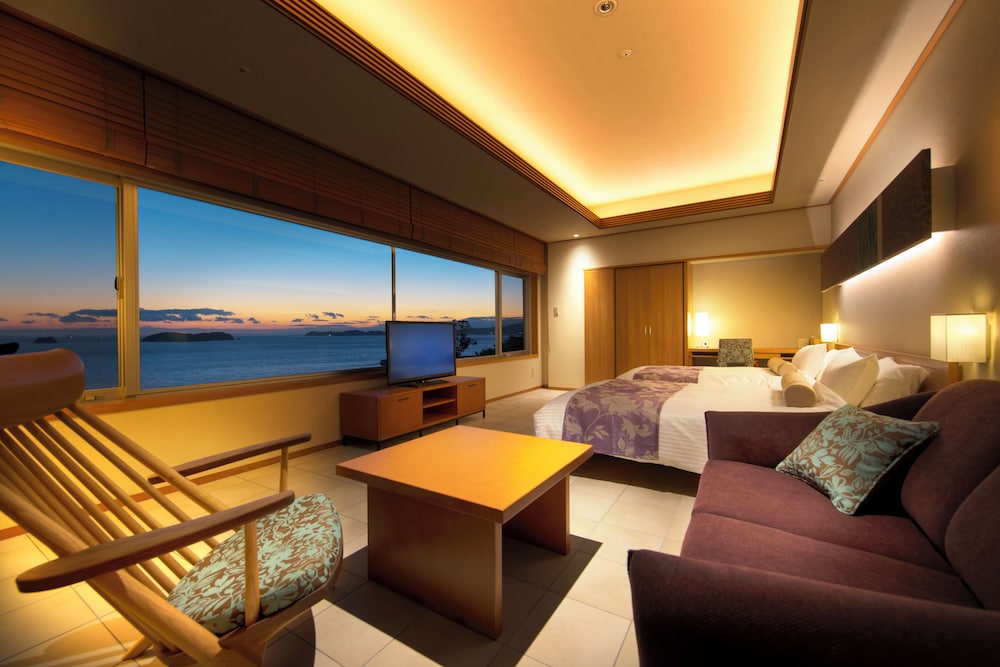 Hotel Meizanso in Gamagori liegt am Meer, nur wenige Schritte von Mikawawan Quasi-Nationalpark und eine 2-minütige Fahrt von Berg Kobo entfernt. Dieses Hotel ist 1,8 km von Lagunasia (Freizeitpark) und 2,3 km von Takeshima Fantasiemuseum entfernt. Fühl dich in einem der 95 klimatisierten Zimmer mit Kühlschrank wie zu Hause. Die Badezimmer bieten kostenlose Toilettenartikel und Hausschuhe. Zur Austattung gehören Safes und Massagen im Zimmer; die Zimmer werden nur an bestimmten Tagen sauber gemacht. Entfernungen werden bis auf 0,1 Kilometer gerundet.