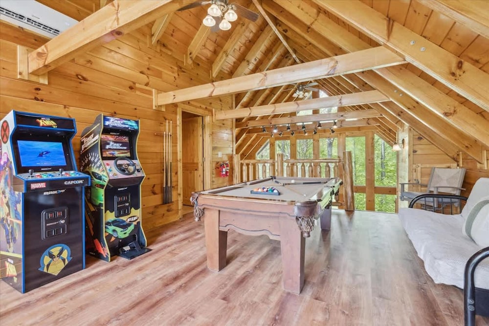 Looky Yonder Cabin by Beyond Expectations With Hot Tub in Gatlinburg lockt mit einem Aufenthalt, bei dem du nur 15 Autominuten von Bent Creek Golfclub und Little Pigeon River entfernt bist. Dieses Apartment ist 15,7 km von Great-Smoky-Mountains-Nationalpark und 20,8 km von Ripley's Aquarium of the Smokies entfernt. Fühl dich in einem der 6 Zimmer wie zu Hause. Entfernungen werden bis auf 0,1 Kilometer gerundet.