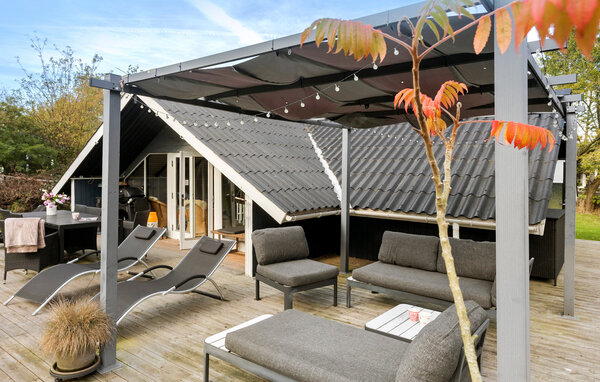 Dieses charmante Ferienhaus besticht durch seine gemütliche Atmosphäre und eine stilvolle Kombination aus heller und dunkler Holzverkleidung. Die Einrichtung ist liebevoll gestaltet und lädt zu entspannten Stunden ein. Lassen Sie den Alltag hinter sich, machen Sie es sich im wohnlichen Wohnzimmer bequem und bereiten in der offenen Küche köstliche Urlaubsgerichte zu. Die großzügige Terrasse ist ideal, um im Freien zu grillen, zu essen und die Sonne zu genießen, während Kinder im Garten spielen.