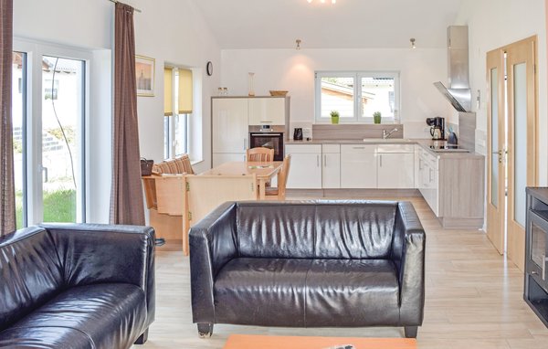 Ferienhaus in der Nähe von Gerolstein gelegen. Hier verbringen Sie mit Ihrer Familie einen angenehmen Urlaub in einem der schönsten Naturgebiete in Deutschland, der Eifel. Das Ferienhaus steht in einem kleinen Bungalowpark und verfügt über drei Schlafzimmer, eins davon mit einem Doppelbett, die anderen zwei mit Etagenbetten. Das Wohnzimmer mit offener Küche verfügt über einem Kamin, vor dem Sie gemütliche Abende verbringen können.