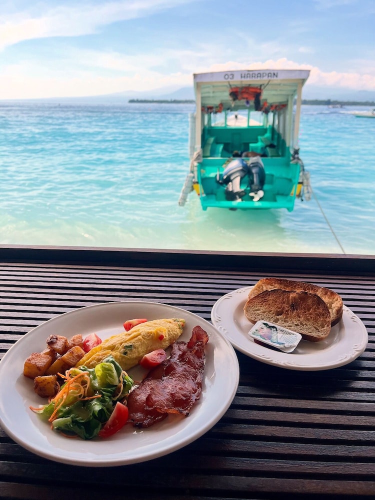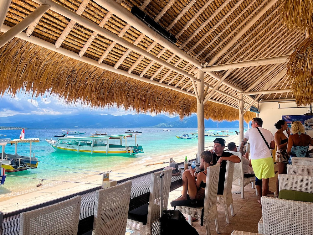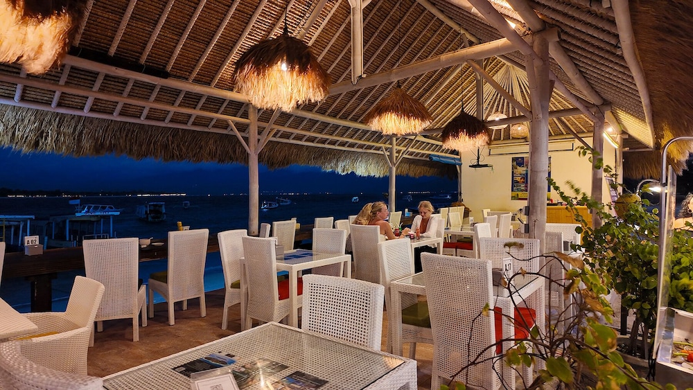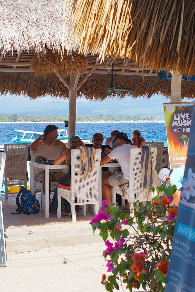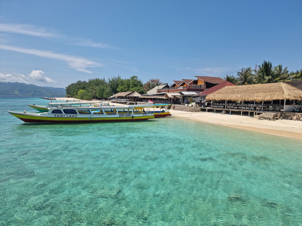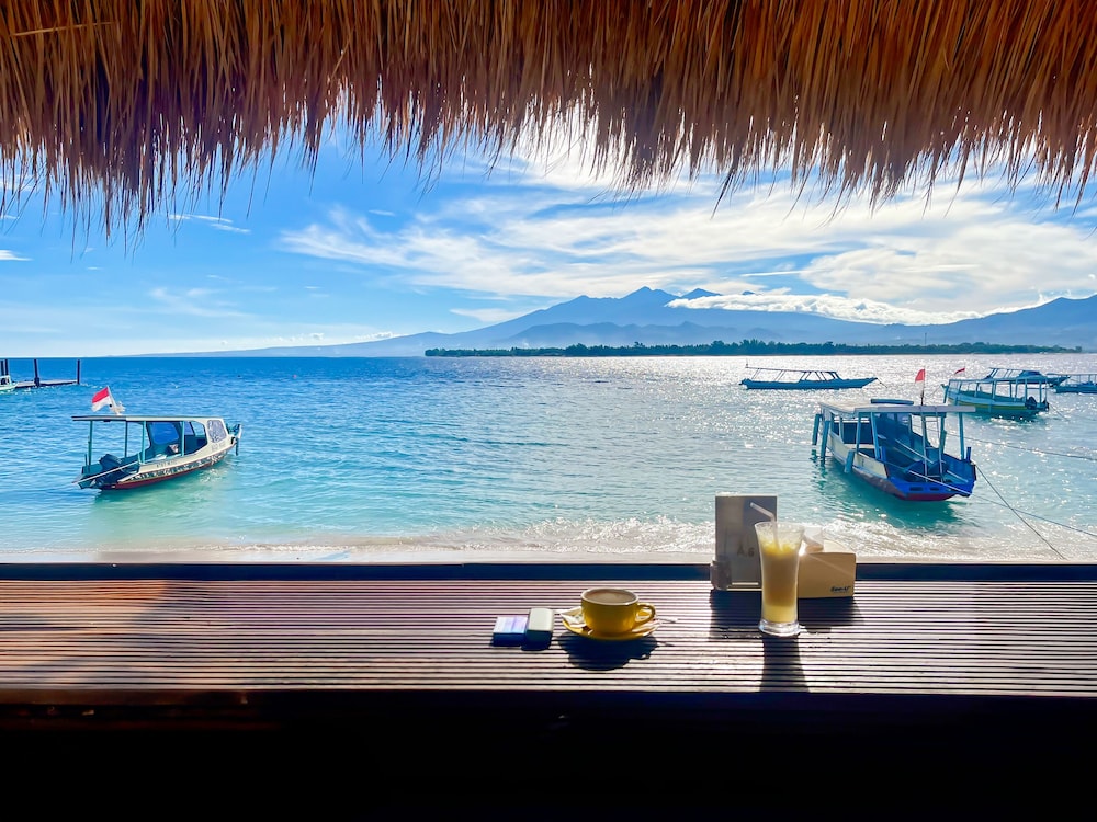 Kura Kura Beach Resort in Gili Meno liegt am Strand, nur wenige Schritte von Hafen von Gili Meno und eine 1-minütige Fahrt von Fährhafen von Gili Trawangan entfernt. Dieses Hotel in Strandnähe ist 1,2 km von Aussichtspunkt Gili Trawangan und 29,6 km von Senggigi Beach entfernt. Fühl dich in einem der 15 klimatisierten Zimmer mit Kühlschrank und Minibar wie zu Hause. Ein WLAN-Internetzugang (kostenlos) ist ebenso verfügbar wie Kabelempfang. Es sind eigene Badezimmer mit Duschen vorhanden, die über kostenlose Toilettenartikel und Bidets verfügen. Zur Austattung gehören Telefone ebenso wie Safes und Schreibtische. Entfernungen werden bis auf 0,1 Kilometer gerundet.