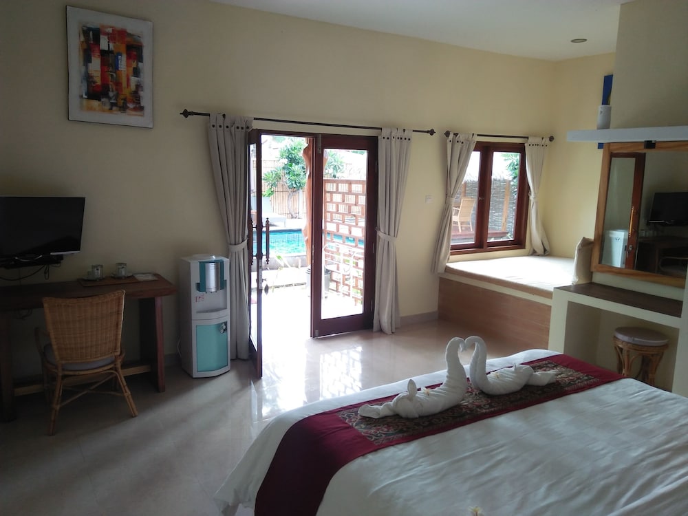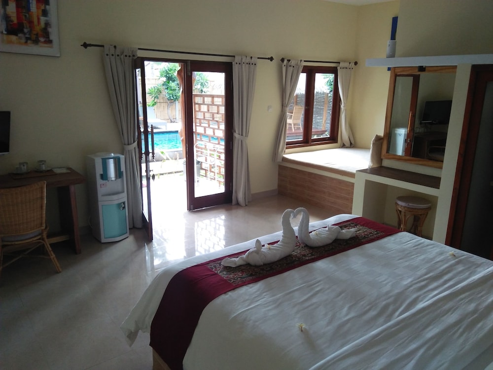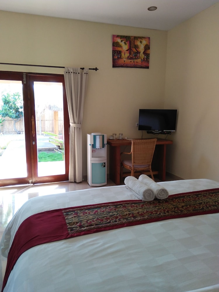 Villa Kinagu in Gili Meno ist nur wenige Schritte von Danau Gili Meno und Hafen von Gili Meno entfernt. Dieses B&B ist 29,2 km von Senggigi Beach und 0,1 km von Gili Trawangan Strand entfernt. Fühl dich in einem der 3 klimatisierten Zimmer mit LED-Fernseher wie zu Hause. Ein WLAN-Internetzugang (kostenlos) ist ebenso verfügbar wie Satellitenempfang. Es sind eigene Badezimmer mit Duschen vorhanden, die über Haartrockner und Hausschuhe verfügen. Zur Austattung gehören Schreibtische und Wasserkocher; die Zimmer werden täglich sauber gemacht. Entfernungen werden bis auf 0,1 Kilometer gerundet.