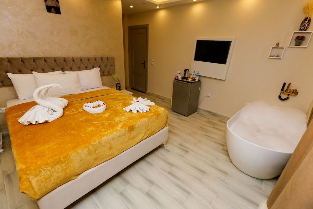 Venus Pyramids Inn besticht durch eine zentrale Lage in Gizeh, nur 5 Minuten Fahrt entfernt von: Pyramiden von Gizeh und Große Sphinx von Giseh. Dieses Aparthotel im luxuriösen Stil ist 5,6 km von Grand Egyptian Museum und 3,4 km von Cheops-Pyramide entfernt. Fühl dich in einem der 9 klimatisierten Zimmer mit LCD-Fernseher wie zu Hause. Ein WLAN-Internetzugang (kostenlos) ist ebenso verfügbar wie Satellitenempfang. Es gibt eigene Badezimmer, die über Regenduschen und Designer-Toilettenartikel verfügen. Zur Austattung gehören Wasserkocher und kostenlose Teebeutel/Instantkaffee; die Zimmer werden auf Anfrage sauber gemacht. Entfernungen werden bis auf 0,1 Kilometer gerundet.