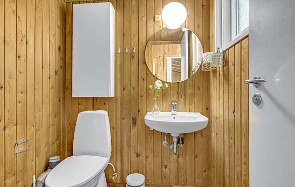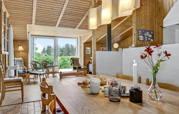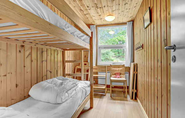 Das gemütliche Ferienhaus liegt hoch platziert, auf einem hügeligen Naturgrund und nur 200 m vom schönen Sandstrand. Es ist bestens isoliert, u. a. mit Energiefenstern. Das Wohnzimmer mit Kaminofen ist schön möbliert und wenn im Kaminofen das Feuer knistert besonders gemütlich. Der 50 m² große Poolraum und der 18 m² große Pool sorgen dafür, dass Sie hier bei jedem Wetter gute und erholsame Urlaubstage verbringen können. Das Haus hat auch einen kleinen Hems, wo die Kinder spielen können. Hier liegen auch Matratzen für zusätzliche Schlafgelegenheiten. Zwei Badezimmer und vier geräumige Schlafzimmer machen dieses Haus auch für zwei Familien ideal. Auf drei Seiten ist das Haus mit guten Terrassen ausgestattet. Das Grundstück grenzt im Osten an den Wald Mejlgård Skov, genießen Sie den Blick auf diesen geschützten Wald von der ungestörten Terrasse hinter dem Haus. Oft kommen Rehe und anderes Wild aus dem Wald auf das Grundstück. 100 m vom Haus entfernt beginnt ein 5 km langer Rad- und Wanderweg und bringt Sie am Wasser entlang durch das Schutzgebiet nach Bønnerup. In Fjellerup Strand gibt es Minigolf und gute Angelstellen.