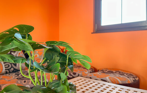 Genießen Sie einen erholsamen Urlaub in diesem Ferienhaus, das Ihnen Ruhe, Privatsphäre und zahlreiche Freizeitmöglichkeiten bietet. Treten Sie ein in den warm gestalteten Wohnbereich mit seiner einladenden Atmosphäre. Entspannen Sie sich auf dem gemütlichen Sofa oder genießen Sie gemeinsame Mahlzeiten am großen Esstisch. Die Kombination aus rustikalem Holz, leuchtenden Farben und funktionaler Ausstattung schafft ein angenehmes Wohnklima.