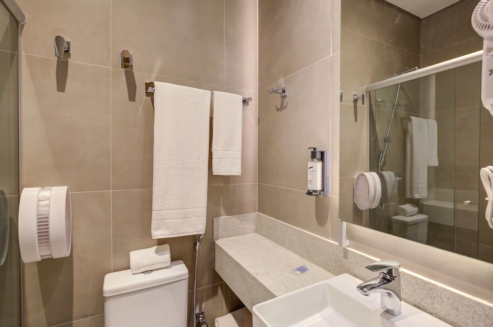 Fast Sleep Suites by Slaviero Hotéis dentro do Aeroporto Guarulhos Terminal 2, desembarque Oeste in Guarulhos (Internationaler Flughafen Gouverneur André Franco Montoro) ist nur 15 Minuten Fahrt von Shopping Metrô Boulevard Tatuapé (Einkaufszentrum) und Einkaufszentrum Norte entfernt. Dieses Hotel ist 16,4 km von Neo Química Arena und 17,4 km von Expo Center Norte entfernt. Fühl dich in einem der 46 klimatisierten Zimmer mit Flachbildfernseher wie zu Hause. Ein WLAN-Internetzugang (kostenlos) steht zur Verfügung. Die Badezimmer bieten Duschen, kostenlose Toilettenartikel und Haartrockner. Entfernungen werden bis auf 0,1 Kilometer gerundet.