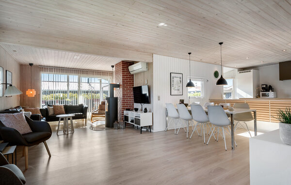 Dieses Ferienhaus liegt auf einem offenen Dünengrundstück nur wenige hundert Meter von sowohl der Nordsee als auch dem Ferring See entfernt und bietet Platz für zwei Familien. Es ist komfortabel und mit einem Whirlpool und einer Sauna eingerichtet. Als zusätzliche Wärmequelle können Sie den Kaminofen benutzen und es gibt eine Wärmepumpe. Vom Wohnraum gelangen Sie auf die große, eingezäunte Terrasse.