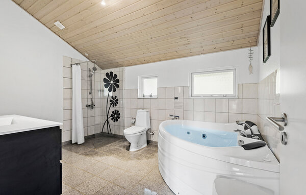Dieses freundliche Ferienhaus in Hemmet Strand lädt Sie ein, eine entspannte Auszeit zu genießen. Die lichtdurchfluteten Räume und die gemütliche Atmosphäre schaffen den perfekten Rückzugsort. Hier finden Sie alles vor, was Sie zum Wohlfühlen und Entspannen brauchen. Nach einem Tag voller Erkundungen können Sie sich in der Whirlpool-Badewanne entspannen oder auf einer der mehreren Terrassen die frische Luft und die Natur genießen. Für ein besonderes Erlebnis bietet das Shelter die Möglichkeit, unter dem Sternenhimmel zu übernachten – ein Highlight für Naturfreunde und Abenteurer gleichermaßen.
