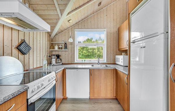 Dieses Ferienhaus liegt auf einem sehr schönen Grundstück nahe des Hafen von Bork. Das Haus ist gepflegt und bietet viel Platz. Wohnzimmer und die Küche liegen zueinander in einer offenen Verbindung. Eine Wärmepumpe und der Holzofen im Wohnzimmer dienen als Wärmequelle. Es gibt insgesamt drei Schlafzimmer, eines mit Doppelbett und zwei mit Einzelbett Betten. Darüberhinaus gibt es ein Badezimmer mit Dusche, Whirlpool und einer eigenen Sauna. in der Eingangspartie ist ein kleiner Bereich, wo eine Waschmaschine und ein Trockner installiert sind.