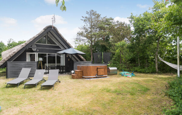 Erholen Sie sich in diesem gemütlichen Reetdachhaus mit Whirlpool im Garten.