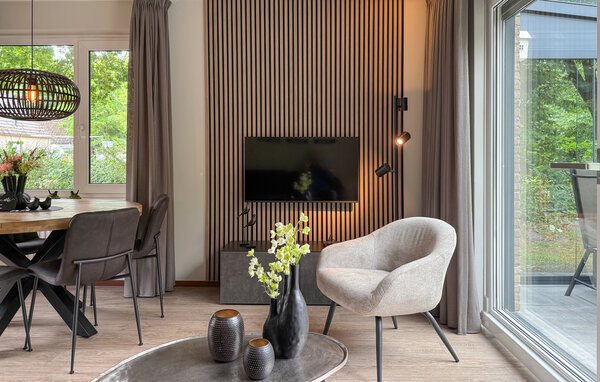 Erleben Sie einen erholsamen Aufenthalt in diesem stilvoll eingerichteten Ferienhaus, das Komfort und Natur harmonisch verbindet. Ruhig gelegen bietet es beste Voraussetzungen für eine Auszeit mit der ganzen Familie. Richten Sie sich im behaglichen Wohnbereich ein, der durch warme Farben und geschmackvolle Details besticht. Genießen Sie gemeinsame Mahlzeiten am Esstisch oder lassen Sie den Tag auf dem bequemen Sofa bei einem Film ausklingen. Die Küche in modernem Design bietet die Möglichkeit, sich vom Frühstück bis zum Abendessen selbst zu versorgen.