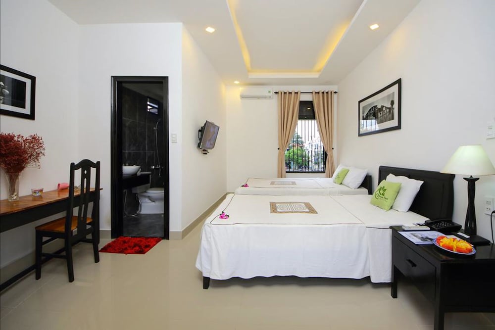 Hoi An Green View Homestay in Hoi An (Stadtzentrum von Hội An) ist nur 15 Minuten Fahrt von Nachtmarkt von Hội An und Strand An Bang entfernt. Diese Pension ist 19,3 km von Strand My Khe und 23,3 km von Fluss Han entfernt. Fühl dich in einem der 5 klimatisierten Zimmer mit Kühlschrank und Minibar wie zu Hause. Ein WLAN-Internetzugang (kostenlos) steht zur Verfügung. Es sind eigene Badezimmer mit Duschen vorhanden, die über kostenlose Toilettenartikel und Bidets verfügen. Zur Austattung gehören Schreibtische und kostenloses Mineralwasser; die Zimmer werden täglich sauber gemacht. Entfernungen werden bis auf 0,1 Kilometer gerundet.