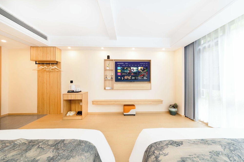 Mount Huangshan Danqing Yayuan B&B Hotel in Huangshan (Tangkou Town) ist nur einen 10-minütigen Fußmarsch von Berge von Huangshan entfernt. Dieses Aparthotel im luxuriösen Stil ist 4,1 km von Wasserfall Jiulong und 5,1 km von Yuping-Seilbahn entfernt. Fühl dich in einem der 16 klimatisierten Zimmer mit Smart-TV wie zu Hause. Dein Pillowtop Bett bietet Daunenbettdecken und hochwertige Bettwaren. Digitalempfang und Smart Speakers stehen ebenso zur Verfügung wie ein WLAN-Internetzugang (kostenlos). Es gibt eigene Badezimmer mit Duschen, die über Regenduschen und kostenlose Toilettenartikel verfügen. Entfernungen werden bis auf 0,1 Kilometer gerundet.