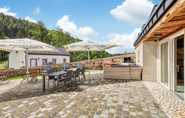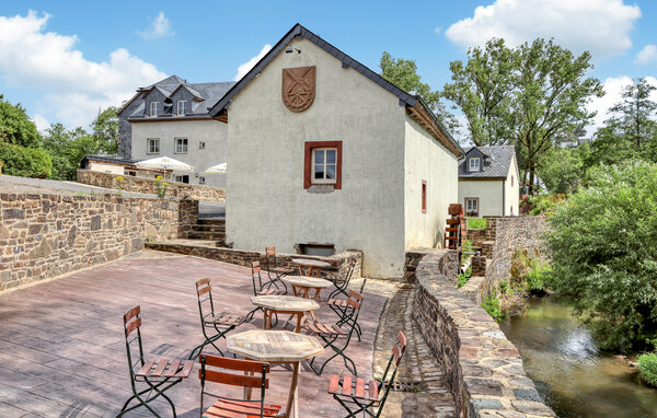 Tauchen Sie ein in den Charme dieser einladenden Ferienwohnung in Irrhausen, die Ihnen Komfort und Stil inmitten der Eifellandschaft bietet. Die geschmackvoll eingerichteten Innenräume schaffen eine behagliche Atmosphäre, in der Sie sich sofort wohlfühlen werden. Der Wellnessbereich mit Sauna, Whirlpool und WC, direkt von der Terrasse zugänglich, lädt zu entspannenden Momenten nach einem Tag voller Erlebnisse ein. Diese Unterkunft kann zusammen mit zwei weiteren Ferienwohnungen im Haus gemietet werden, ideal für größere Gruppen oder Familien.
