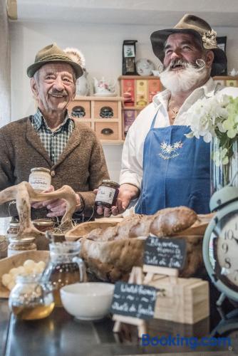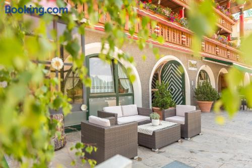 Located in Braies, Hotel Edelweiss offers free Wi-Fi in public areas, a restaurant and free Turkish bath and sauna. It offers rooms with independent heating and a private bathroom. The rooms are cozy and decorated in a rustic style, featuring carpet flooring and wooden furniture. Each comes with a TV and a balcony. Breakfast is buffet style, offering sweet and savory products. The hotel’s restaurant specializes in Mediterranean and local cuisine. Vegetarian and gluten-free options are available on request. Edelweiß also offers a games room and a playground area for children. Prags ski slopes are 1.2 mi from the property. Brunico is a 25-minute drive away. Please note that ther is no playground area for children.
