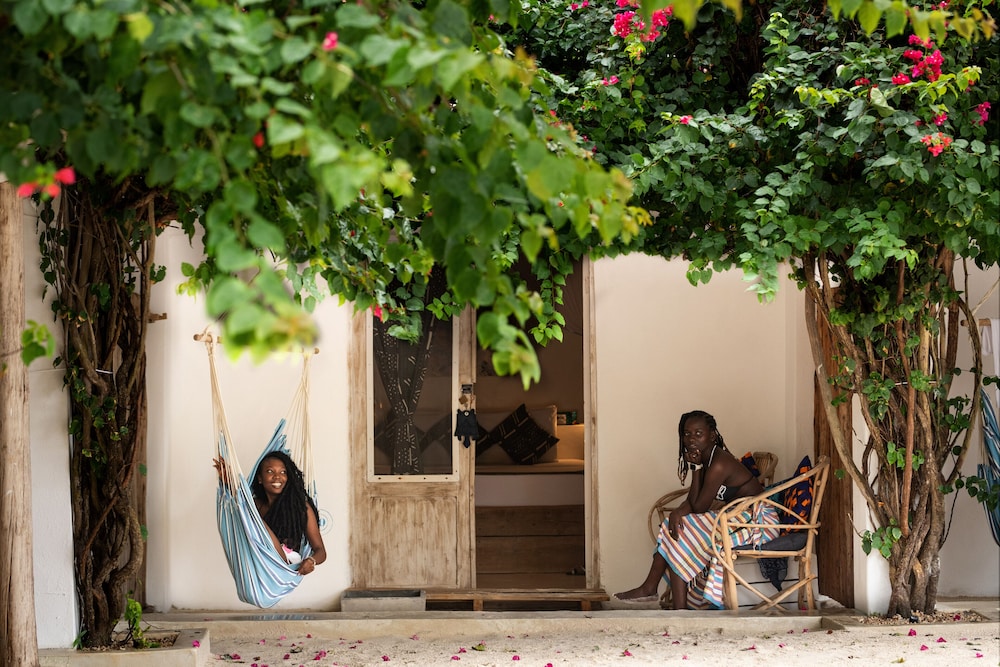 The Loop Beach Resort in Jambiani liegt am Strand, 15 Minuten Fahrt von Strand von Jambiani und Strand von Paje entfernt. Dieses Hotel in Strandnähe ist 4,5 km von Swahili Cave und 4,8 km von Kuza Cave entfernt. Fühl dich in einem der 14 klimatisierten Zimmer wie zu Hause. Ein WLAN-Internetzugang (kostenlos) steht zur Verfügung. Die Badezimmer bieten Duschen und kostenlose Toilettenartikel. Zur Austattung gehören Safes und Deckenventilatoren; die Zimmer werden täglich sauber gemacht. Entfernungen werden bis auf 0,1 Kilometer gerundet.