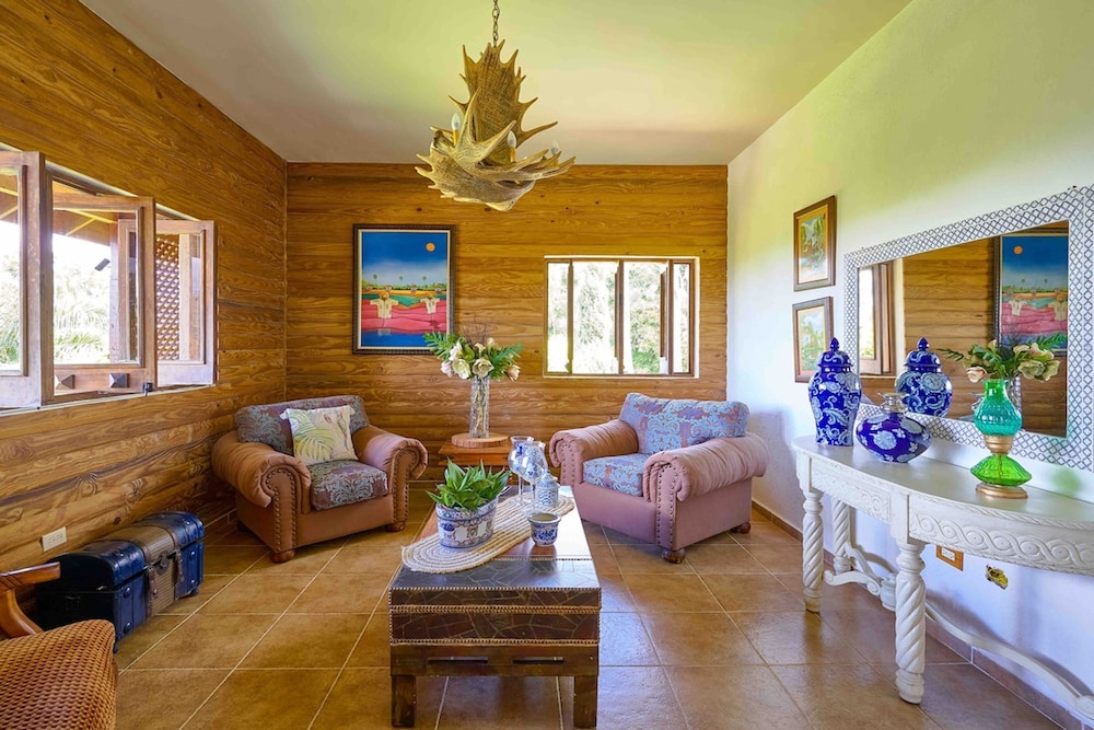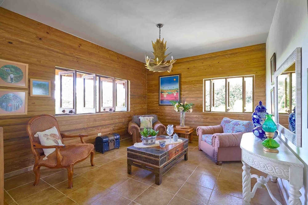 4BR Wood Mountain Villa Jarabacoa Heated Pool liegt in Jarabacoa und ist eine 5-minütige Fahrt von Salto Jimenoa Dos und eine 6-minütige Fahrt von Jarabacoa Golfclub entfernt. Diese Villa ist 9,5 km von Zentraler Parl und 11,5 km von Jarabacoa-Schild entfernt. Fühl dich in einem der 11 Zimmer wie zu Hause. Entfernungen werden bis auf 0,1 Kilometer gerundet.