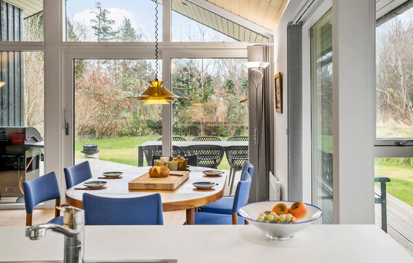Tauchen Sie ein in das stilvolle Interieur dieses großzügigen Ferienhauses und fühlen Sie sich auf Anhieb wie zu Hause. Bereiten Sie in der eleganten Küche Ihre Lieblingsgerichte zu und genießen Sie Ihre Mahlzeiten im lichtdurchfluteten Essbereich mit Blick ins Grüne. Lassen Sie den Abend bei einem Film im gemütlichen Wohnzimmer oder bei Gesellschaftsspielen ausklingen.