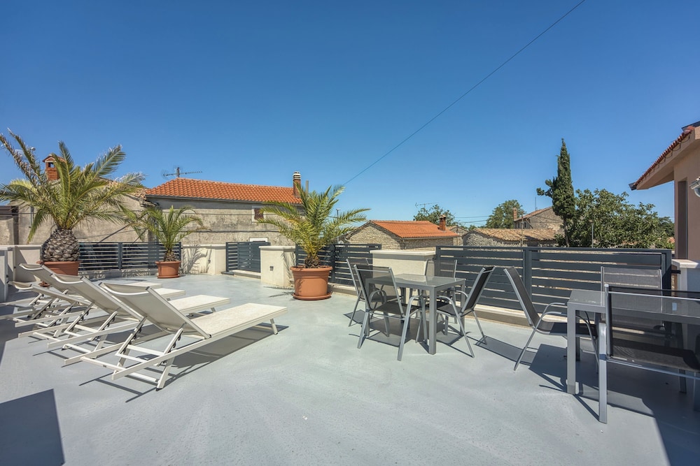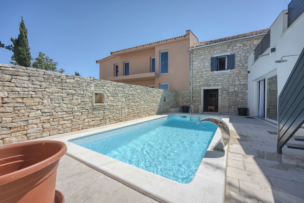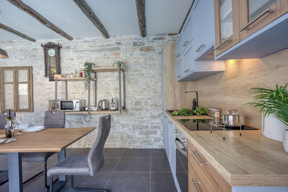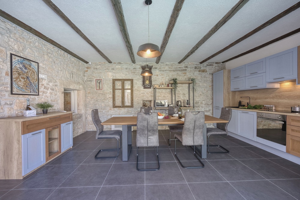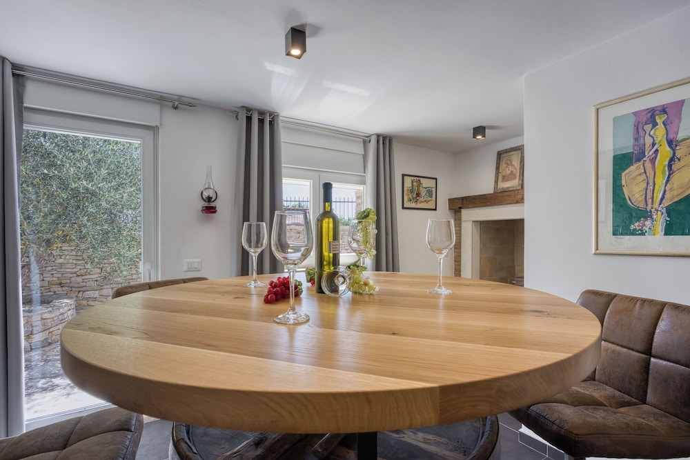 Diese Villa in Kanfanar liegt nur eine 10-minütige Fahrt von Burg Grimani und Zisterne entfernt. Diese Villa ist 5,3 km von Kirche Mariä Verkündigung und 5,3 km von Loggia entfernt. Diese Villa mit Klimaanlage verfügt sowohl über einen Kamin als auch einen Privatpool und verspricht dir einen fantastischen Aufenthalt. Die Küche verfügt über einen Kühlschrank, einen Ofen und eine Herdplatte. Ein 21-Zoll-Flachbildfernseher mit Satellitenempfang sorgt für deine Unterhaltung, während du von dem WLAN-Internetzugang (kostenlos) profitieren kannst, um mit Freunden und Familie in Kontakt zu bleiben. Vor Ort findest du jeglichen Komfort, darunter eine Mikrowelle und einen Wasserkocher mit Kaffee-/Teezubehör. Entfernungen werden bis auf 0,1 Kilometer gerundet.