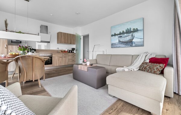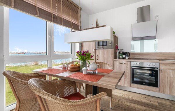 Im großzügigen Wohnzimmer erwartet euch eine gemütliche Wohnlandschaft, die sich bei Bedarf zu einem weiteren Doppelbett umfunktionieren lässt. Ein Essbereich lädt zu gemeinsamen Mahlzeiten ein und bietet dabei einen herrlichen Ausblick auf die Ostsee. Die angrenzende, hochwertig ausgestattete Küche macht das Zubereiten von kulinarischen Köstlichkeiten zu einem Vergnügen.