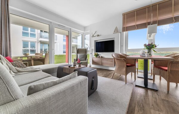 Die Wohnung verfügt über insgesamt zwei Schlafzimmer, ausgestattet mit komfortablen Doppelbetten und einem eigenen Fernseher. Besonders hervorzuheben ist dabei, dass eines der Schlafzimmer einen direkten Blick auf die Ostsee gewährteine wahre Wohlfühloase für erholsame Nächte.