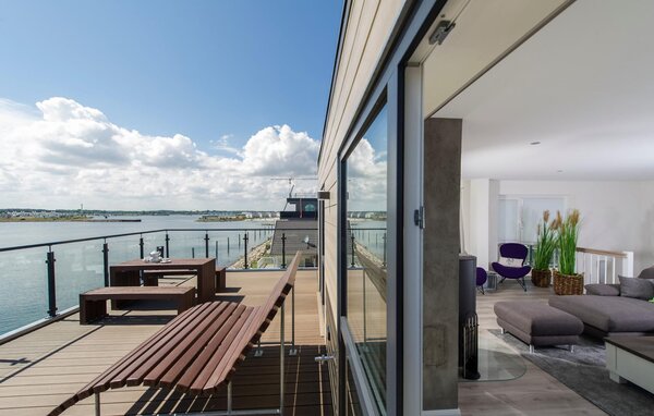 Traumzeit auf der Ostsee. Diese moderne Penthouse-Ferienwohnung macht ihrem Namen alle Ehre, denn die exponierte Lage, hochwertige Ausstattung und moderne Einrichtung überzeugen gleichermaßen. Auf der Nordmole des OstseeResort Olpenitz gelegen, auf einer schmalen Landzunge mitten auf der Ostseebefindet sich dieses besondere Ferienobjekt umgeben von Wasser.