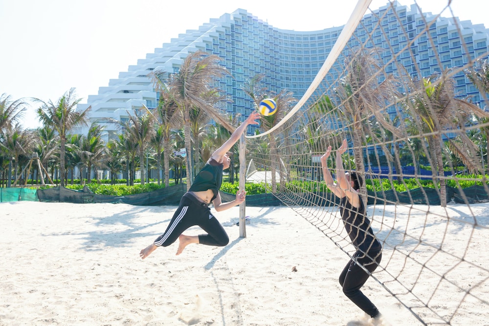 Zum Angebot gehören eine rund um die Uhr besetzte Rezeption, eine Gepäckaufbewahrung und ein Aufzug. Für Veranstaltungen stehen folgende Einrichtungen zur Verfügung: ein Konferenzzentrum und Tagungsräume. Vor Ort gibt es Folgendes: Parken ohne Service (kostenlos). Entspann dich im Wellnessbereich, der Massagen und Körperbehandlungen bietet. Sicher wirst du die Freizeiteinrichtungen zu schätzen wissen, zu denen Folgendes gehört: 2 Außenpools und 2 Pickleball-Felder im Freien. Dieses Resort bietet auch kostenloses WLAN, ein Picknickbereich und ein Bankettsaal. Lass deinen Tag bei einem Drink an der Strandbar ausklingen. Gegen Gebühr wird täglich von 06:30 Uhr bis 10:00 Uhr ein Frühstücksbuffet angeboten.- Aufpreis für das Frühstücksbuffet: ca. 250000 VND für Erwachsene und ca. 125000 VND für Kinder