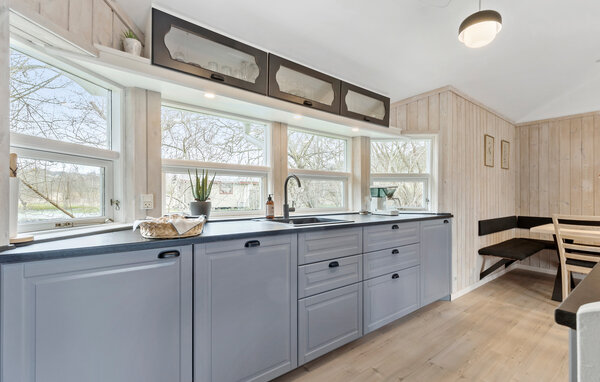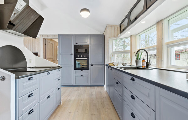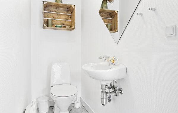 Architektonisch sehr schönes Holzhaus, 1998 gebaut. Es liegt in einem ruhigen und attraktiven Gebiet nah am Meer, wo man baden, surfen und angeln kann. Das Haus ist sehr geräumig und hat außer allen komfortablen Bequemlichkeiten einen großen, hellen Wohnraum mit Kaminofen. Im schönen Bad mit Fußbodenheizung gibt es u.a. einen Whirlpool. In einer separaten Abteilung des Hauses liegen die Sauna und die Gästetoilette. Das Ferienhaus liegt in der Nähe des Freiluft- und Naturcenter Karpenhøj, das verschiedene Freilichtaktivitäten bietet. Die Stockbetten haben Erwachsenengröße und Boxmatratzen (80 cm x 200 cm).