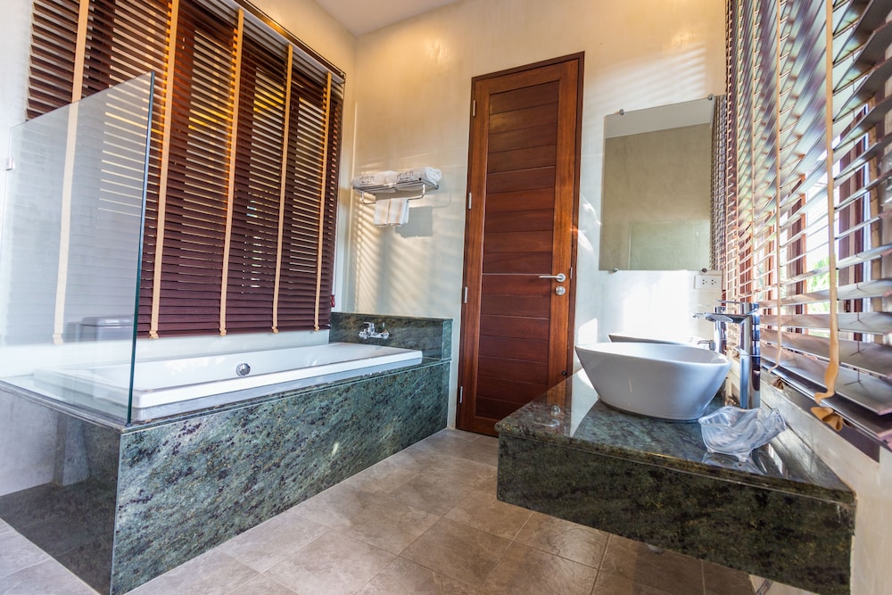 Bhu Tarn Koh Chang Resort and Spa in Ko Chang liegt am Strand, nur 10 Minuten Fahrt von White Sand Beach (Strand) und Klong Prao-Strand entfernt. Dieses Hotel in Strandnähe ist 0,4 km von Nationalpark Mu Ko Chang und 2,9 km von Wasserfälle von Klong Plu entfernt. Fühl dich in einem der 21 klimatisierten Zimmer mit Minibar und Flachbildfernseher wie zu Hause. Die Zimmer haben eigene Balkone. Ein WLAN-Internetzugang (kostenlos) ist ebenso verfügbar wie Kabelempfang. Es sind eigene Badezimmer mit Duschen vorhanden, die über Haartrockner und Bademäntel verfügen. Entfernungen werden bis auf 0,1 Kilometer gerundet.
