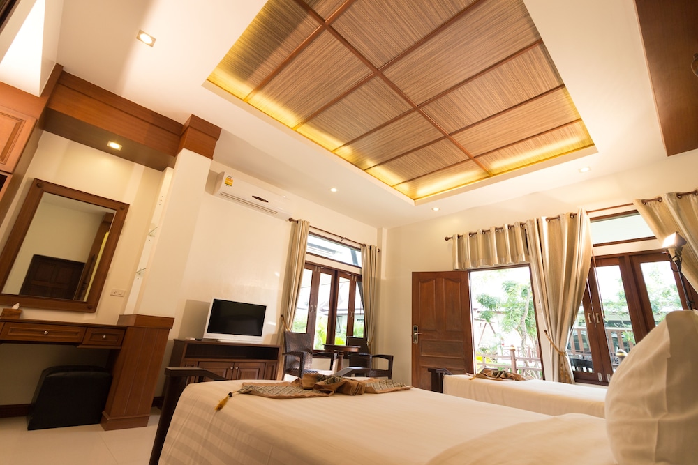 Zum Angebot gehören eine rund um die Uhr besetzte Rezeption, eine Wäscherei und ein Tresorfach an der Rezeption. Gegen Aufpreis kannst du den Flughafentransfer (auf Anfrage) und den Shuttle zum Fährterminal nutzen. Entspann dich im Wellnessbereich, der Massagen, Körperbehandlungen und Gesichtsbehandlungen bietet. Auch kostenloses WLAN und Unterstützung bei der Tourenplanung/beim Ticketerwerb bietet dieses Hotel. Nahe gelegene Attraktionen zu erreichen ist dank des Shuttles (gegen Gebühr) ein Kinderspiel. Genieße Mittagessen oder Abendessen bei Bhu Patta, einem Restaurant mit Schwerpunkt auf thailändische Küche. Oder bleib gemütlich auf deinem Zimmer und nutz den Zimmerservice (bitte Zeiten beachten). Entspann dich mit einem erfrischenden Getränk an der Bar/Lounge oder der Poolbar. Frühstück ist gegen Gebühr erhältlich.- In dieser Unterkunft sind keine Haustiere gestattet, auch keine ausgebildeten Tiere wie z. B. Blindenhunde.