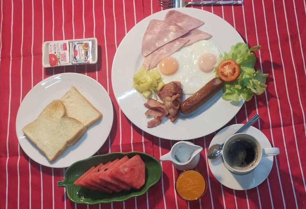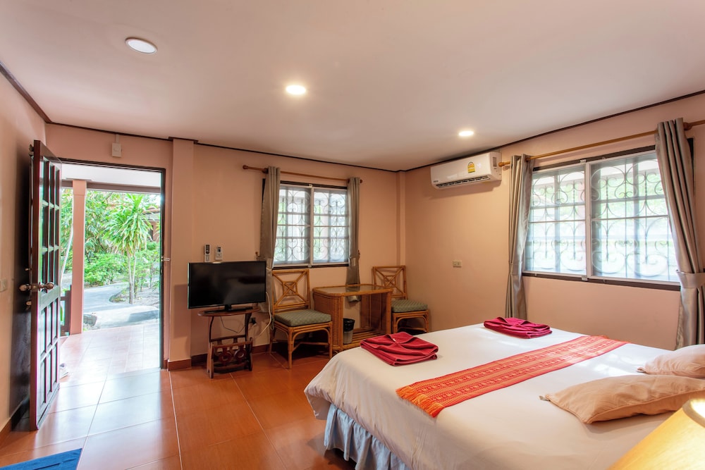Zum Angebot gehören ein Textilreinigungsservice, mehrsprachiges Personal und eine Wäscherei. Vor Ort gibt es Folgendes: Parken ohne Service (kostenlos). Nimm dir ausreichend Zeit für Einrichtungen wie: Außenpool und Whirlpool. Zu den Highlights gehören auch kostenloses WLAN und Unterstützung bei der Tourenplanung/beim Ticketerwerb. Genieße Mittagessen oder Abendessen bei Harrys Thai House, einem Restaurant dieses Resorts. Oder bleib gemütlich auf deinem Zimmer und nutz den Zimmerservice (bitte Zeiten beachten). Deinen Durst kannst du an der Bar/Lounge stillen. Gegen Gebühr wird täglich von 08:00 Uhr bis 12:00 Uhr ein nach Wunsch zubereitetes Frühstück angeboten.- Aufpreis für das nach Wunsch zubereitete Frühstück: ca. 250 THB pro Person
