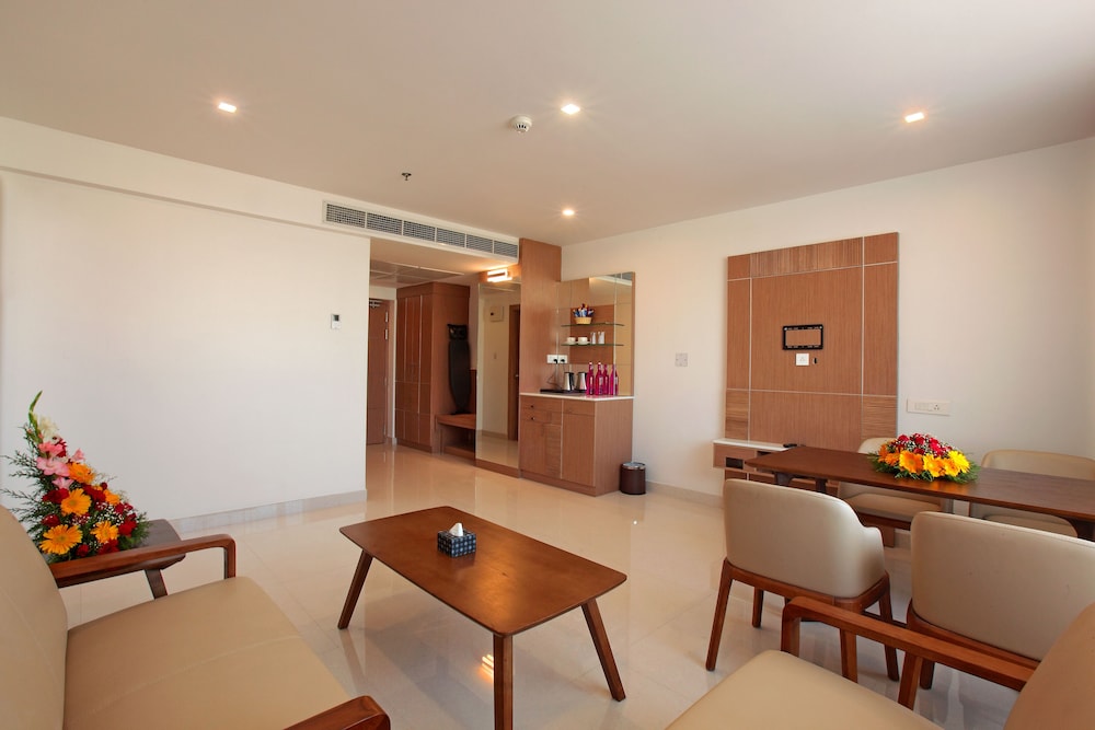 Tribute Royale in Kanayannur (Maradu) liegt 15 Minuten Fahrt entfernt von: Lulu Mall und VPS Lakeshore Hospital. Dieses Hotel ist 3 km von Forum Kochi Shopping Center und 3,5 km von Kerala Folklore Museum entfernt. Fühl dich in einem der 20 klimatisierten Zimmer mit LED-Fernseher wie zu Hause. Ein WLAN-Internetzugang (kostenlos) ist ebenso verfügbar wie Digitalempfang. Es gibt eigene Badezimmer, die über kostenlose Toilettenartikel und Haartrockner verfügen. Zur Austattung gehören Safes in Laptop-Größe und Deckenventilatoren sowie Telefone, mit denen du kostenlose Ortsgespräche führen kannst. Entfernungen werden bis auf 0,1 Kilometer gerundet.