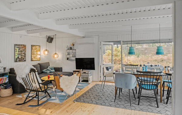Am ruhigen Høve Strand erwartet Sie Ihr charmantes Sommerhaus, in dem Sie inmitten der Natur entspannen können. Lassen Sie sich vom Zwitschern der Vögel und dem Rauschen der Blätter begleiten, während Sie die friedliche Umgebung genießen. Der kinderfreundliche Strand, den Sie nach einem kurzen Spaziergang erreichen, ist bekannt für seine weichen Sanddünen und lädt zu entspannten Stunden am Meer ein. Das Ferienhaus bietet durch die offene Gestaltung von Ess- und Wohnbereich eine ideale Atmosphäre für gemeinsame Abende. Auf dem Grundstück finden Sie ein Shelter, in dem Sie mit Blick auf den bezaubernden Naturgarten zur Ruhe kommen können. Nutzen Sie auch die Fußballtore für Spiel und Spaß sowie die Feuerstelle für gesellige Abende.