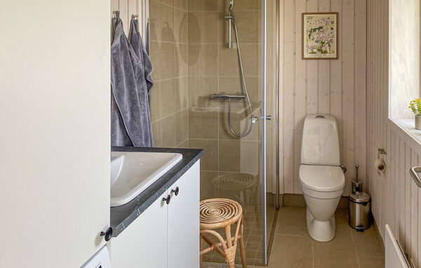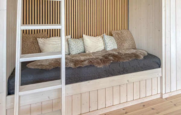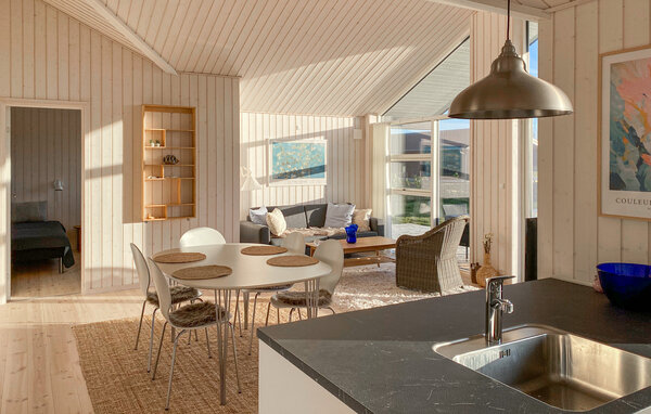 Genießen Sie eine erholsame Auszeit in diesem wunderschönen Ferienhaus. Die ruhige Lage und die offene Gestaltung des Hauses schaffen die Möglichkeit, sich nach allen Regeln der Kunst zu erholen und einen komfortablen Urlaub zu verleben. Die große Fensterfront lässt viel Tageslicht herein und sorgt für eine angenehme, freundliche Atmosphäre. Der schöne Wohnbereich besticht durch hohe Decken und helle Holzwände. Lassen Sie sich auf dem gemütlichen Sofa nieder und genießen Sie den Blick ins Freie. Der offene Küchen- und Essbereich lädt zu geselligen Kochabenden ein. Bereiten Sie Ihre Mahlzeiten in der modernen Küche mit Kochinsel zu und genießen Sie diese am eleganten Esstisch. Der gemütliche Schlafboden bietet einen schönen Rückzugsort zum Lesen oder Entspannen.
