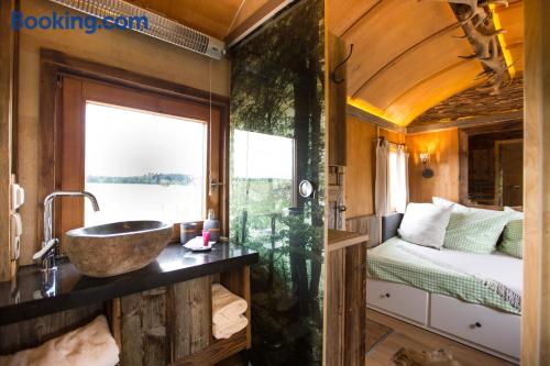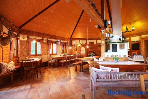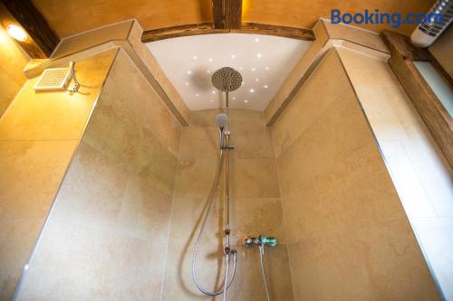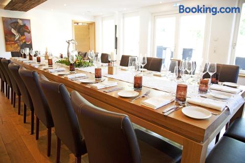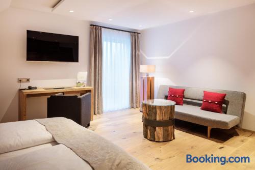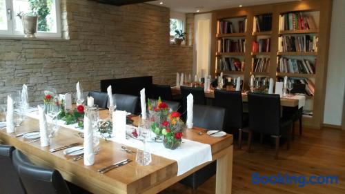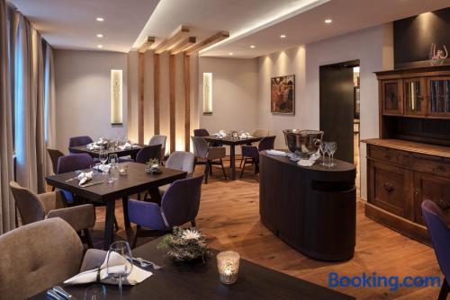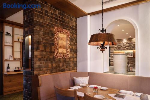 Located in the Swabian Alb countryside, this family-run hotel features a restaurant with beer garden. It lies in Königsbronn, 5 mi from the center of Heidenheim. Country-style rooms are provided at the Widmann‘s Löwen. Rooms include a TV, mini-bar and a bathroom with hairdryer. All guests enjoy views of the large garden and countryside. 2 brand-new chalets with a private sauna and all luxurious comforts are also available. Breakfast is provided. Regional dishes are served in Widmann‘s restaurant with traditional tiled stove. The cooking school and forest hut make ideal locations for events and family celebrations. A 10-minute drive takes you to the meteorite crater of Steinheim am Albuch. The surrounding hills are ideal for hiking, cycling and skiing.