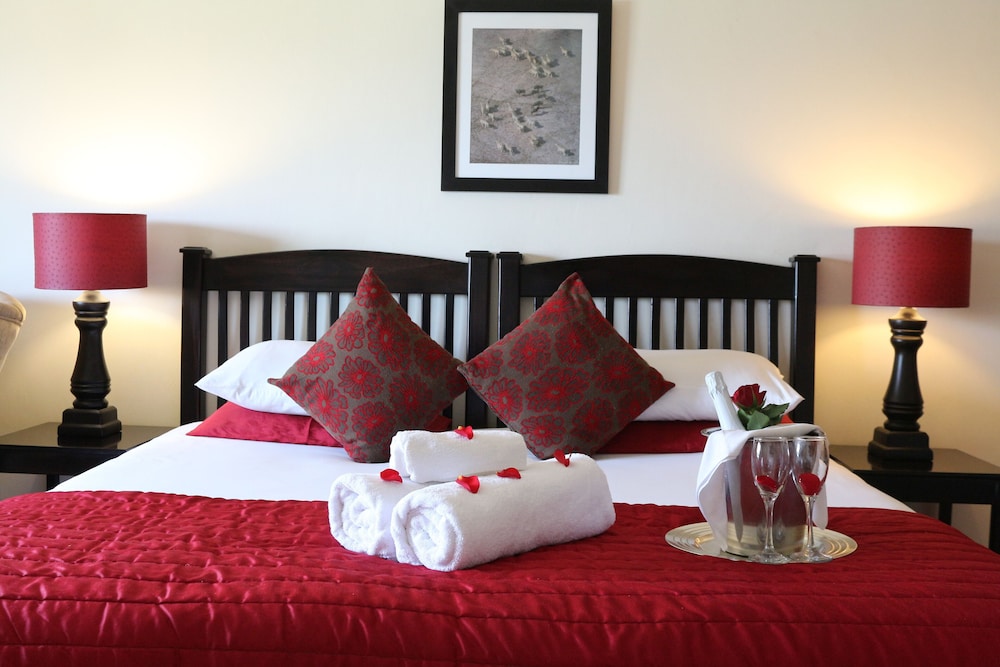 Zum Angebot gehören ein Textilreinigungsservice und eine Wäscherei. Wenn du eine Veranstaltung in Hartbeespoort planst, ist diese Pension eine gute Wahl, denn zu den 2368 Quadratfuß (220 Quadratmeter) großen Veranstaltungsräumlichkeiten zählen Einrichtungen wie: ein Konferenzzentrum. Vor Ort gibt es Folgendes: Parken ohne Service (kostenlos). Gönn dir Massagen, Körperbehandlungen und Gesichtsbehandlungen, die vor Ort angeboten werden. Auch kostenloses WLAN und Unterstützung bei der Tourenplanung/beim Ticketerwerb bietet diese Pension. Ein inbegriffenes englisches Frühstück wird täglich von 08:00 Uhr bis 09:30 Uhr angeboten. Offizielle Bewertung der Qualität durch den TGCSA (Tourism Grading Council of South Africa) - südafrikanische Institution zur Qualitätssicherung.- Früher Check-in gegen Gebühr möglich (je nach Verfügbarkeit)