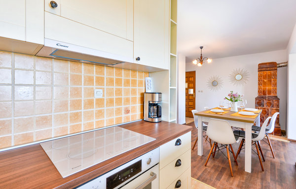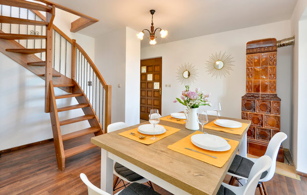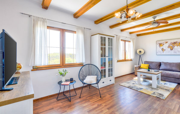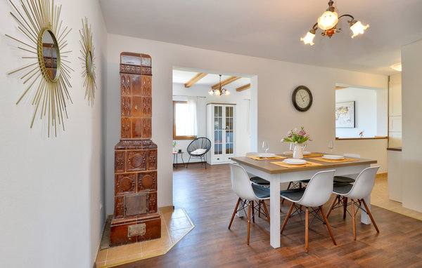 Dieses Ferienhaus begrüßt seine Gäste in idyllischer Lage nahe einem Wald. Mit 3 Schlafzimmern und 2 Bädern bietet es Platz für bis zu 8 Personen, ein Haustier darf ebenfalls mit in den Urlaub kommen. Die interessante Mischung von moderner Einrichtung und sichtbaren Deckenbalken aus Holz verleiht dem Inneren des Hauses seinen besonderen Charme.