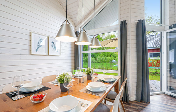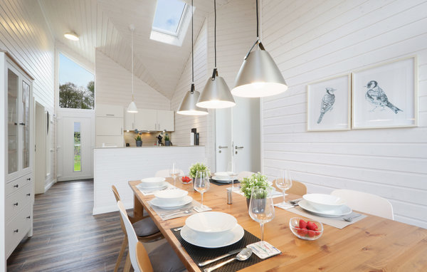 Das moderne Holzhaus „Seezauber“ überzeugt durch den skandinavischen Stil und bietet ausreichend Platz für 6 Erwachsene und 2 Kinder. Aufgrund der firsthoch offenen Decke genießen Sie hier ein angenehmes Raumgefühl und lichtdurchflutete Zimmer. Die maritime Einrichtung in hellen Tönen trägt zur Gemütlichkeit bei.
