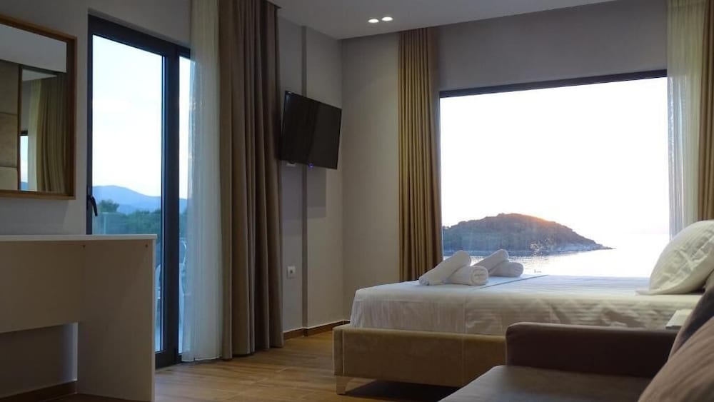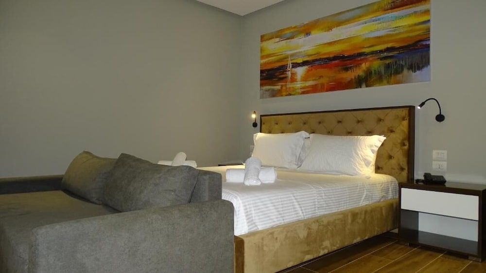 King Hotel Ksamil in Ksamil ist nur eine 5-minütige Fahrt von Ksamil-Inseln und Butrint National Park entfernt. Dieses Hotel in Strandnähe ist 2,9 km von Ionisches Meer und 4,5 km von Taubenhöhlenstrand entfernt. Fühl dich in einem der 18 klimatisierten Zimmer mit Minibar und Flachbildfernseher wie zu Hause. Ein WLAN-Internetzugang (kostenlos) ist ebenso verfügbar wie Kabelempfang. Es sind eigene Badezimmer mit Badewannen oder Duschen vorhanden, die über kostenlose Toilettenartikel und Haartrockner verfügen. Zur Austattung gehören Telefone ebenso wie Schreibtische und Wasserkocher. Entfernungen werden bis auf 0,1 Kilometer gerundet.