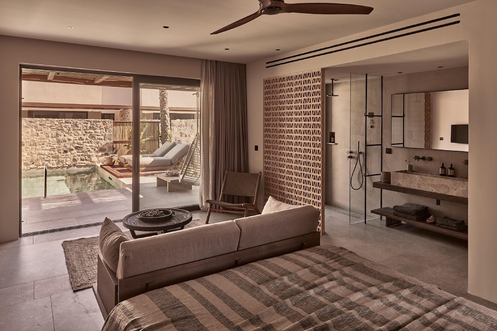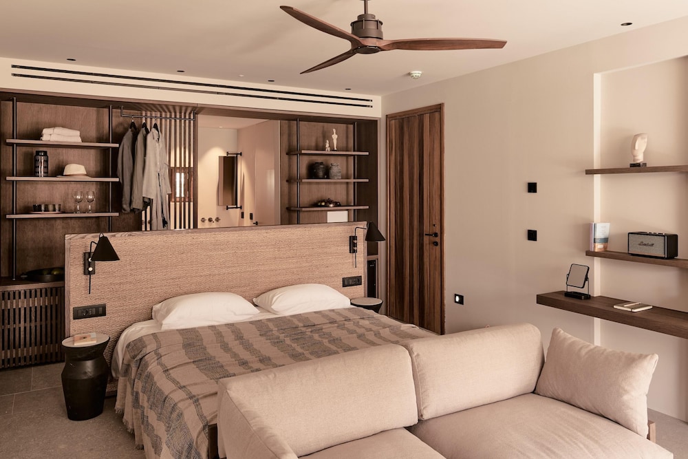 Theros All Suite Hotel - Adults Only in Kos liegt am Strand, nur 5 Minuten Fahrt von Hafen von Kos und Lambi-Strand entfernt. Dieses Hotel in Strandnähe ist 9,8 km von Strand von Tigaki und 2,3 km von Basilika Agia Paraskevi entfernt. Fühl dich in einem der 86 Zimmer, die Minibar und Espressomaschine bieten, wie zu Hause. Dein Memory-Foam Bett bietet Daunenbettdecken und hochwertige Bettwaren. Die Zimmer haben eigene möblierte Balkone oder Patios. Ein WLAN-Internetzugang (kostenlos) steht zur Verfügung. Die Badezimmer verfügen über Duschen, Regenduschen und Designer-Toilettenartikel. Entfernungen werden bis auf 0,1 Kilometer gerundet.