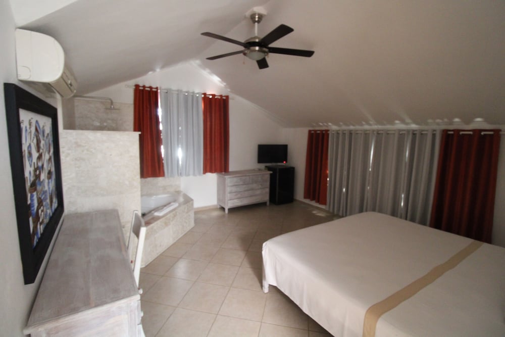 Albachiara Hotel in Las Terrenas (La Iglesia) lockt mit einem Aufenthalt, der nur wenige Schritte von Strand La Iglesia und 2 Gehminuten von Haitian Caraibes Art Gallery entfernt ist. Dieses Aparthotel in Strandnähe ist 0,8 km von Playa Punta Popy und 3,5 km von Cayos Las Ballenas entfernt. Fühl dich in einem der 27 klimatisierten Zimmer, die Küchen bieten, die über große Kühlschränke/Gefrierfächer und Herdplatte verfügen, wie zu Hause. In deinem Zimmer findest du ein Select-Comfort-Bett mit italienischen Bettbezügen von Frette vor. Die Zimmer haben eigene möblierte Balkone. Ein WLAN-Internetzugang (kostenlos) ist ebenso verfügbar wie Kabelempfang. Entfernungen werden bis auf 0,1 Kilometer gerundet.