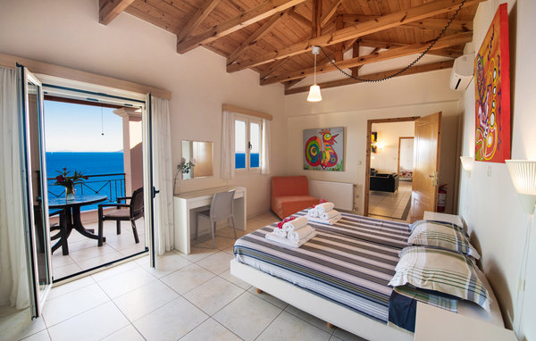 Die Innenräume bieten eine gut ausgestattete Küche, ein komfortables und modernes Wohnzimmer mit großem Balkon und vier Schlafzimmer, die alle ein eigenes Bad und einen Balkon mit phänomenalem Meerblick haben. Zwei der Schlafzimmer liegen im Erdgeschoss und dadurch, dass sie vom Haupthaus getrennt sind, bieten sie eine Extraportion Privatsphäre.