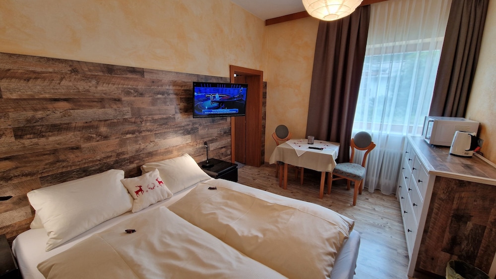Zum Angebot gehören mehrsprachiges Personal, eine Gepäckaufbewahrung und eine Bibliothek. Wenn du eine Veranstaltung in Leutasch planst, ist dieses Gasthaus eine gute Wahl, denn zu den 592 Quadratfuß (55 Quadratmeter) großen Veranstaltungsräumlichkeiten zählen Konferenzfläche und ein Tagungsraum. Vor Ort gibt es Folgendes: Parken ohne Service (kostenlos). Gönn dir einen schneereichen Tag auf den Pisten oder profitiere von Einrichtungen wie: Fahrradverleih. Kostenloses WLAN, ein Spielzimmer/Arcade-Spiele und ein Skiraum stehen ebenfalls zur Verfügung. Dank des kostenfreien Ski-Shuttles ist es kein Problem die Pisten zu erreichen. Activ Pension Bergfrieden hat ein kleines Lebensmittelgeschäft. Deinen Durst kannst du an der Bar/Lounge stillen. Gegen Gebühr wird täglich von 08:00 Uhr bis 10:00 Uhr ein Frühstücksbuffet angeboten.Du wirst gebeten, die folgenden Gebühren direkt in der Unterkunft zu zahlen. Gebühren beinhalten möglicherweise geltende Steuern: