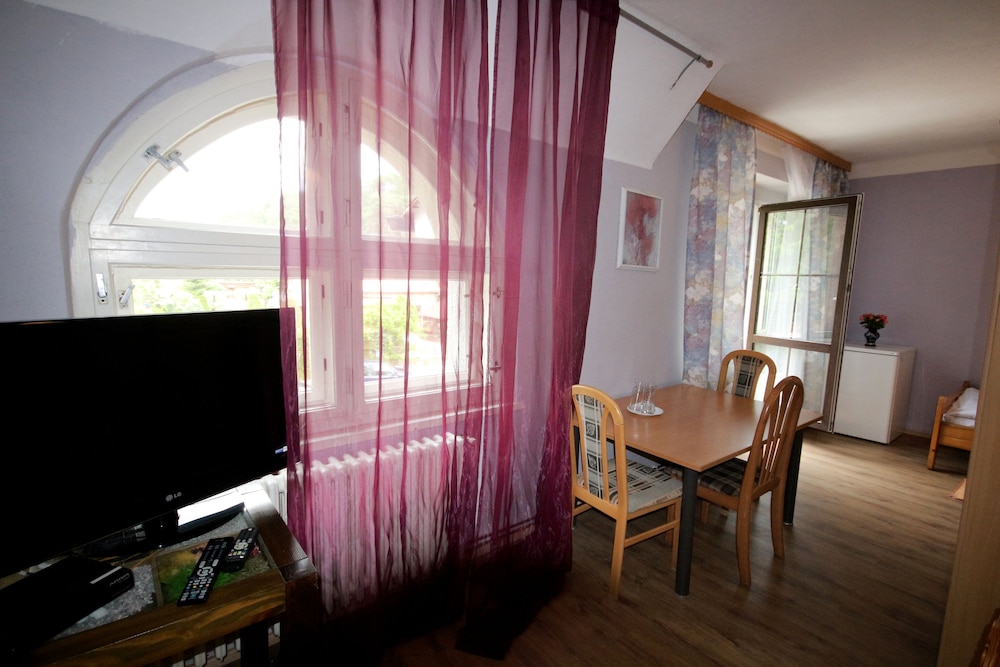 Die Rezeption ist nur zu bestimmten Zeiten besetzt. Vor Ort gibt es Folgendes: Parken ohne Service (kostenlos). Genieße die den schönen Ausblick von folgenden Punkten: Terrasse und Garten. Außerdem kannst du kostenloses WLAN nutzen. Auch ein Picknickbereich und Grillmöglichkeiten werden angeboten. Nutz den Zimmerservice (bitte Zeiten beachten) dieses Hotels. Gegen Gebühr wird täglich von 08:00 Uhr bis 10:00 Uhr ein Frühstücksbuffet angeboten.- Aufpreis für das Frühstücksbuffet: ca. 125 CZK für Erwachsene und ca. 125 CZK für Kinder
